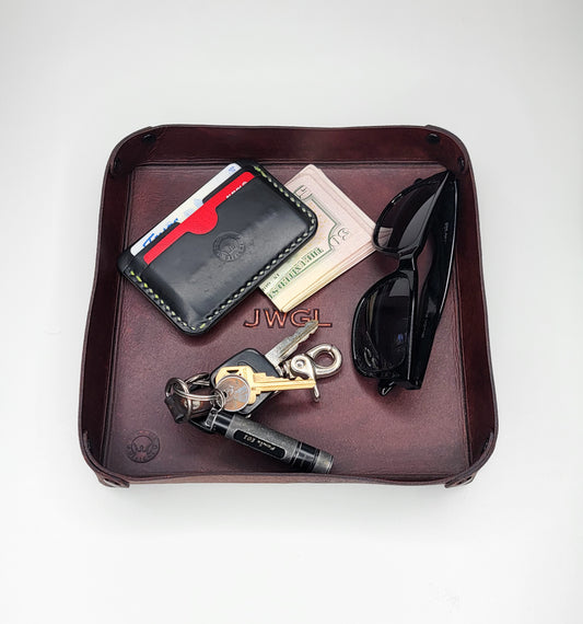 Handmade Leather Valet TrayPersonalized Handmade Full-Grain Leather Valet Tray - Custom Catchall for Keys, Wallet, and AccessoriesRegular price $65.00 USDRegular priceUnit price per