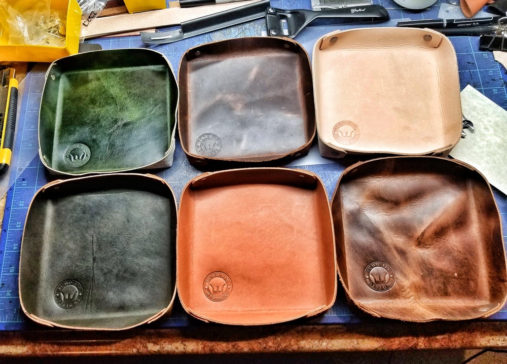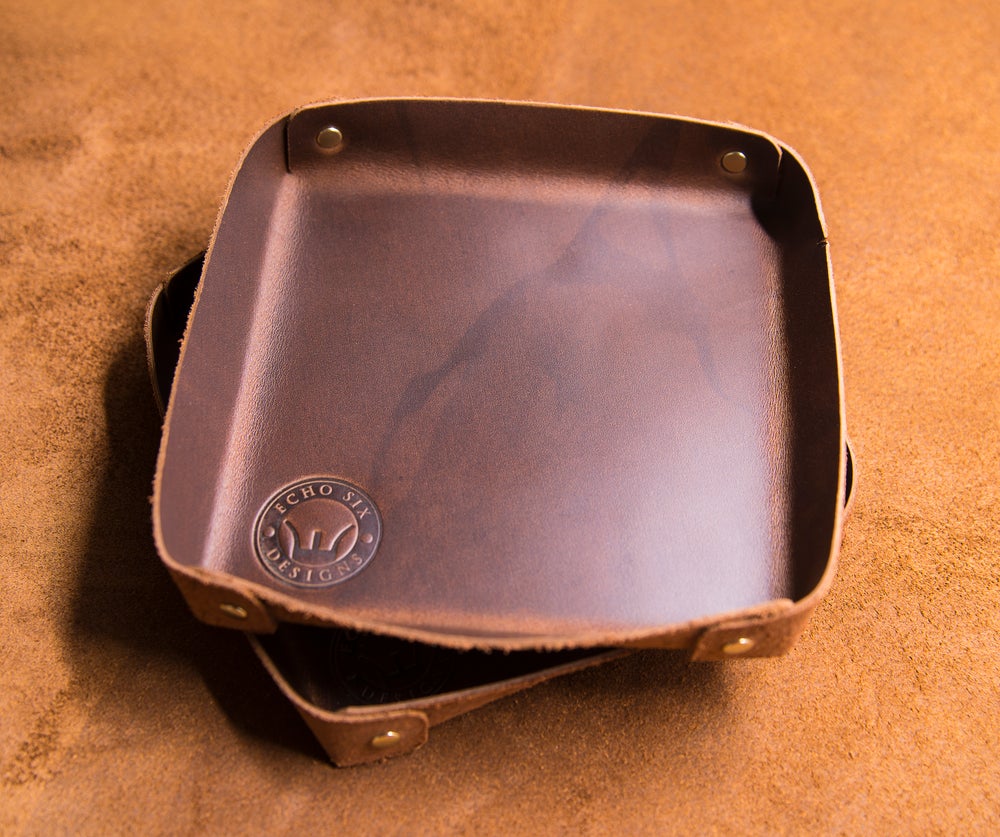Indulge in personalized luxury with our handmade leather valet tray. Carefully crafted from premium leather, each tray is meticulously hand-cut to ensure exceptional quality and durability.