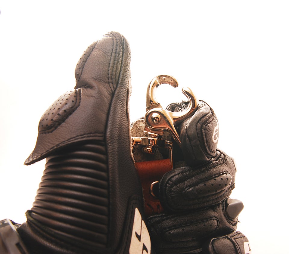 The Moto Clip keychain uses a chrome trigger clip for your belt loop. It allows easy access to your keys while you are wearing your motorcycle gloves.