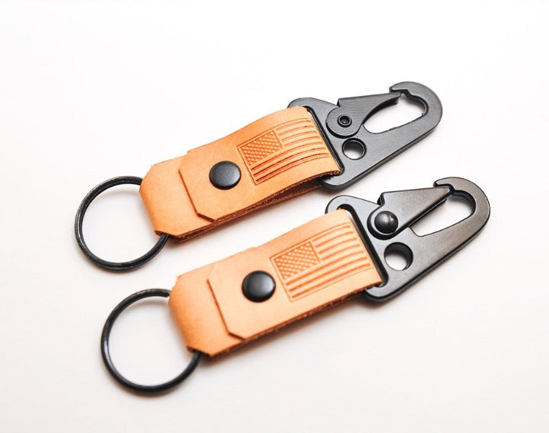 With its timeless design and exceptional craftsmanship, "The Patriot" is a must-have for patriotic individuals. Carry a piece of American heritage wherever you go with this iconic leather American flag keychain. Show your devotion to the red, white, and blue and celebrate the spirit of freedom.